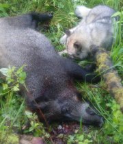 Ну вот, закончилась моя однодневная охота. И закончилась, надо сказать, весьма продуктивно — одним выстрелом двух зайцев (двух кабанчиков).